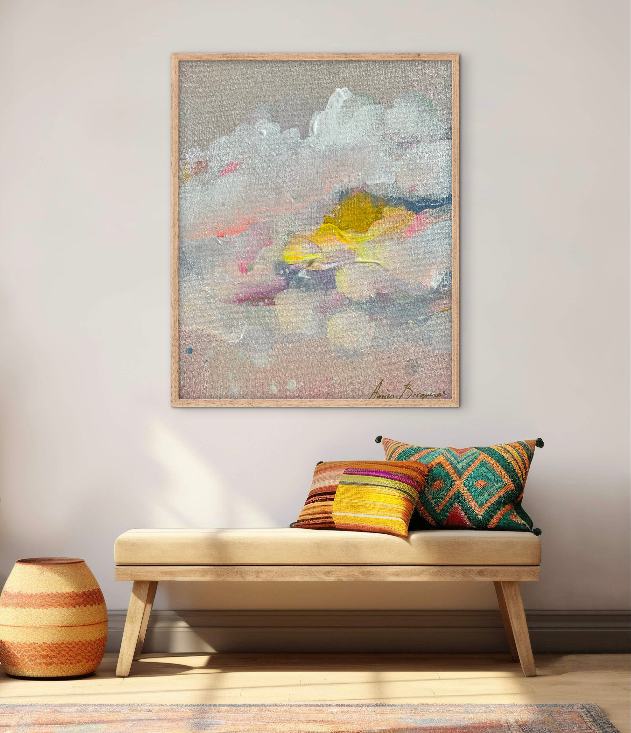 Creado a partir de una obra original de la artista contemporánea Agnes Burguera, es perfecto para quienes buscan decoración de pared moderna, elegante y atemporal, con una atmósfera serena y acogedora.
